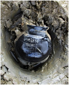 "Several years ago, while walking the foreshore along the Thames Estuary in Kent, I came across a pot base exposed by erosion. Knowing that Roman material had been recorded as being found from this particular spot I carefully dug around the base and extracted it from the thick gloopy clay that makes up this part of the Thames.